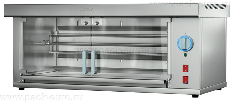 - Съемный шампур рассчитан на 5 кур. Вращение шампура осуществляется электродвигателем.