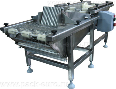 Для перемещения полуфабрикатов в ванне с глазировочным составом и в коробе с панировочными сухарями на машине установлены транспортеры с лентой, изготовленной из пищевой нержавеющей стали.