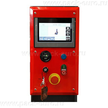 - современное электронное управление с удобной сенсорной панелью с цветным дисплеем. В памяти можно сохранить до 10 программ обмотки. Оператор может регулировать количество витков сверху и снизу, натяжение и предрастяжение пленки, скорость движения обмотчика и другие параметры;