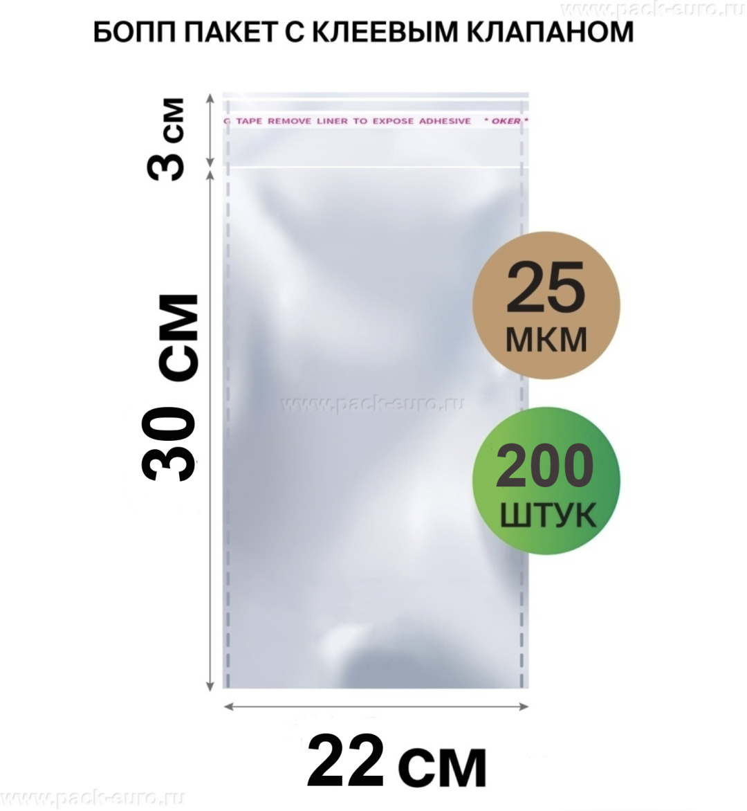 Полипропиленовый пакет с клеевым клапаном 220x300 мм предназначен для бытового использования.
