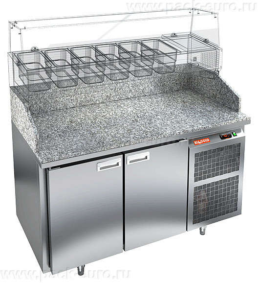 Стол для пиццы HICOLD PZ1-11/GN используется на предприятиях общественного питания и торговли для раскатки теста и обработки ингредиентов, используемых для приготовления пиццы, салатов и других блюд, а также для охлаждения и кратковременного хранения скоропортящихся продуктов и напитков. Модель совмещает в себе рабочую поверхность и охлаждаемый объем, что значительно упрощает работу повара, так как все необходимые компоненты всегда находятся под рукой. Корпус выполнен из нержавеющей стали, столешница - из гранита.