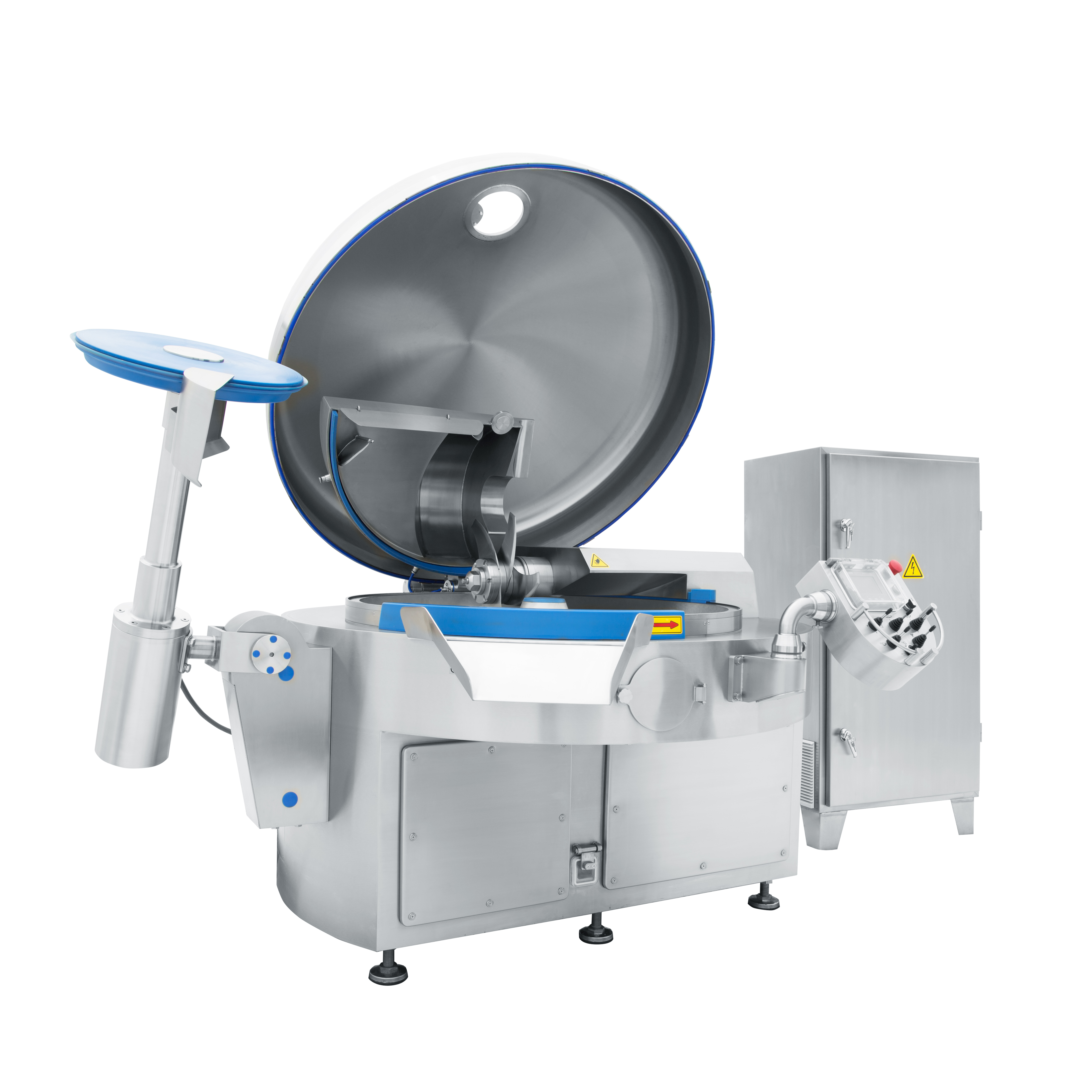 Особенностью серии ZBZ является наличие раздельных приводов для ножевого вала и чаши. Привод ножевого вала оснащен частотным преобразователем. Он обеспечивает плавный пуск и остановку вала, а также плавное переключение скоростей. Количество ступеней – 4, от 750 до 4500 об/мин, для перемешивания имеются две скорости на низких реверсивных оборотах.