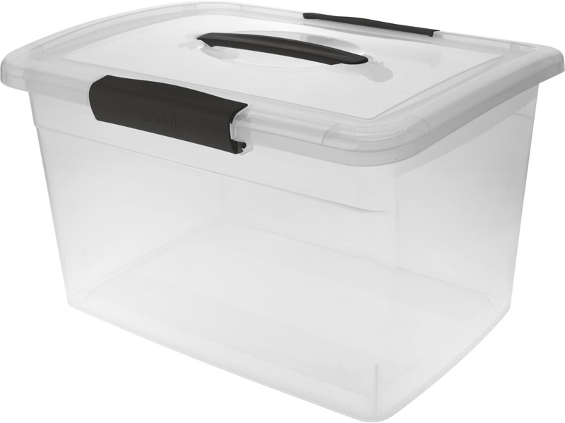 Ящик 350х235х222 11л. для хранения, с крышкой, на клипсах, с ручкой |