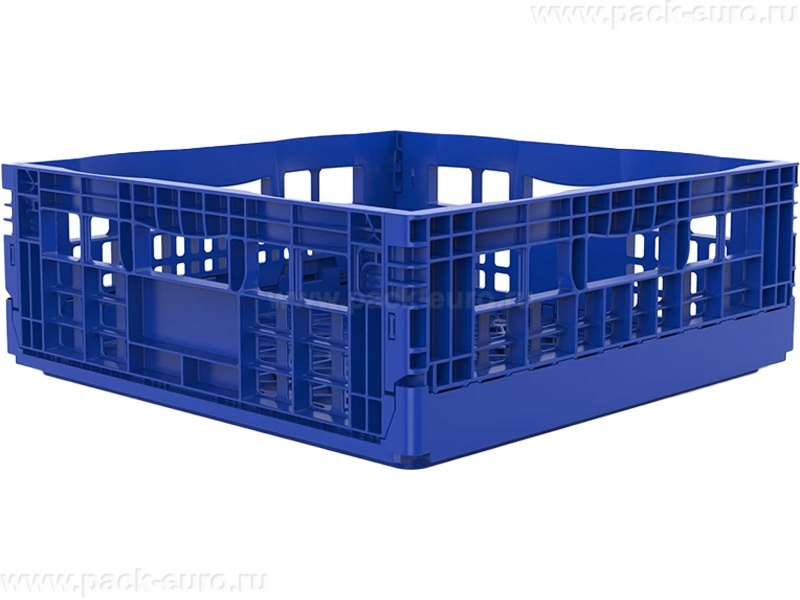 - Максимальная экономия на логистике пустой тары: Фирменный складной механизм позволяет за секунды преобразовать ящик в плоскую панель. В сложенном виде тара занимает до 85% меньше места, что радикально сокращает расходы на ее обратную перевозку и сезонное складирование, напрямую влияя на рентабельность.