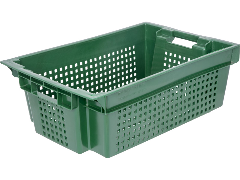 - Надёжная система штабелирования: Конструкция оснащена специальными пазами и выступами, позволяющими безопасно и устойчиво штабелировать заполненные ящики в несколько ярусов. Это обеспечивает рациональное использование складского пространства по вертикали и безопасность складирования.