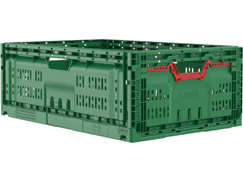 Ящик складной B-6422A — это функциональная тара для организации вентилируемого хранения и транспортировки товаров в сферах сельского хозяйства, розничной торговли свежими продуктами и на производственных складах. Модель с кодом 38575 представляет собой контейнер стандартного формата 600х400 мм с увеличенной до 220 мм высотой, выполненный с перфорированными стенками. Оснащенный складным механизмом, этот ящик обеспечивает оптимальное сочетание полезного объема, активного воздухообмена и экономии пространства при возврате и хранении пустой тары.