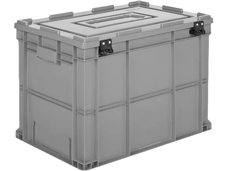 - Полная изоляция с прочной крышкой: Штатная крышка обеспечивает герметичное закрытие, создавая абсолютно защищенное пространство, изолированное от пыли, влаги, загрязнений и механических повреждений. Крышка формирует идеально ровную платформу для безопасного штабелирования.