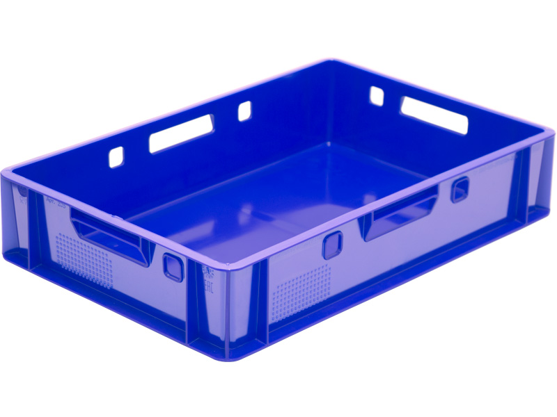 Ящик п/э 600х400х125 серии 200 артикул 205 с сплошными боковыми стенками и сплошным дном. Это мясной ящик, который подойдет для хранения и транспортировки продуктов как в свежем, так и в замороженном виде.