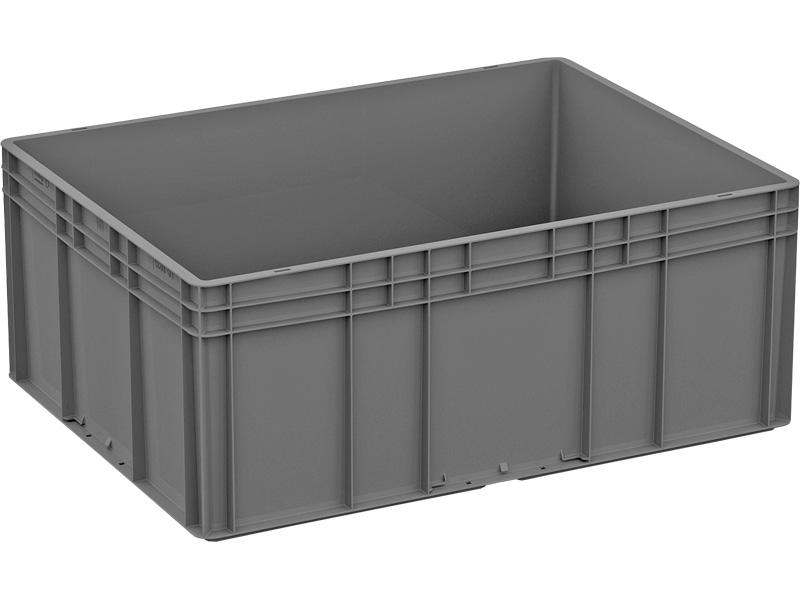 - Высокая стабильность при штабелировании: Жесткая конструкция и ровные опорные поверхности позволяют формировать устойчивые штабели из заполненных ящиков, что критически важно для эффективного использования складских площадей по вертикали.