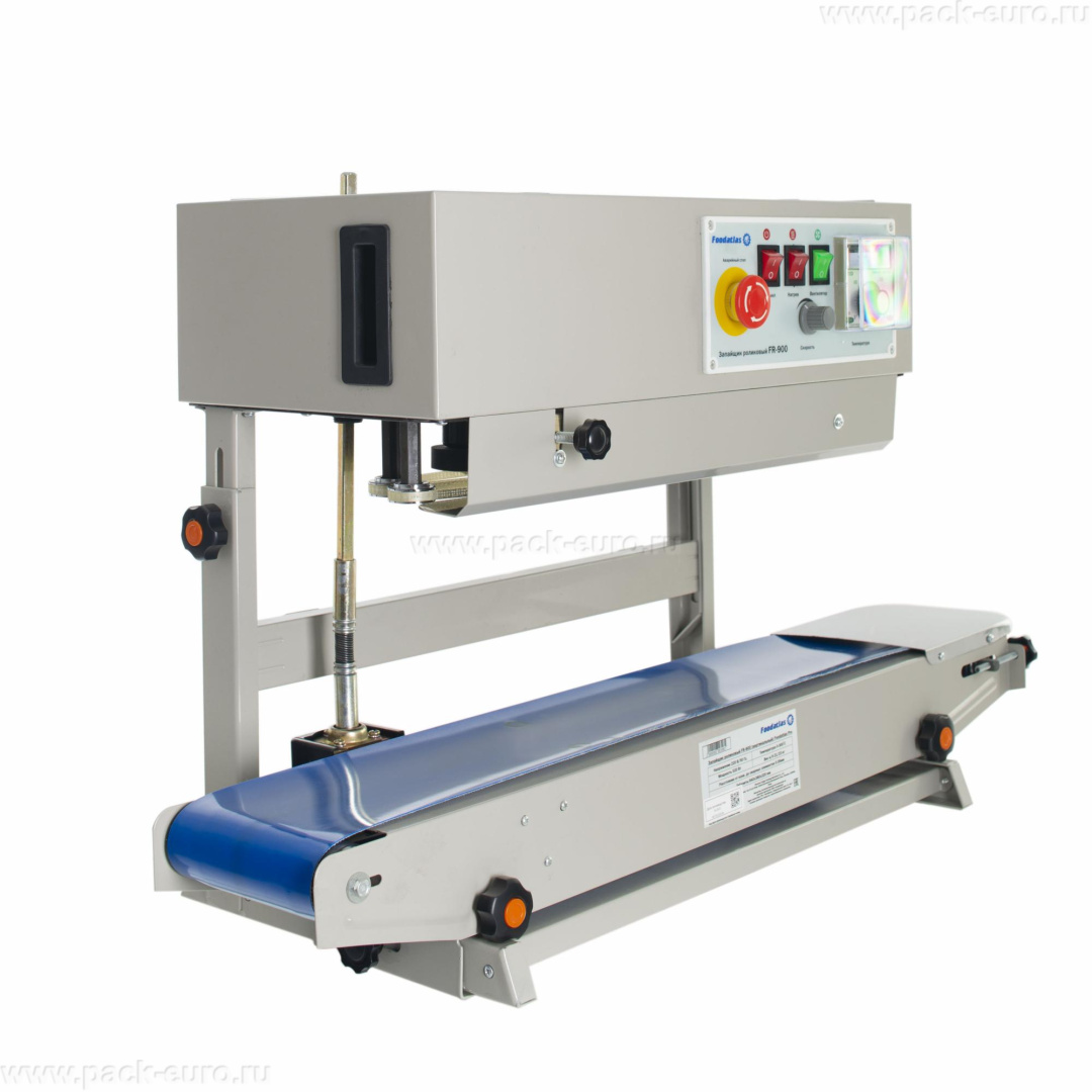 Запайщик роликовый FR-900 запаивает пакеты как в горизонтальном, так и в вертикальном положении. Смена положения из горизонтального в вертикальное быстро производится с помощью деталей, входящих в комплект поставки.